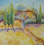 2002De Provence stond als voorbeeld voor dit werk. Er is zand uit de Provence in verwerkt. Het werk is voorzien van een blankhouten baklijst. Geschilderd met acrylverf en gevernist.