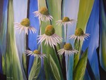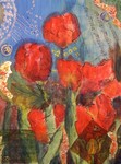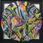 2009Acrylschildering, waarin de bloemen eerst met gesso en zand zijn geschilderd over een achtergrond van aquacryl. Compleet met zwarthouten baklijst en gevernist.
