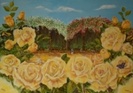 2013In opdracht gemaakt 2-luik. Na het overlijden van een dierbare is deze tuin van herinnering geschilderd. Met persoonlijke elementen in de kleuren van het licht (geel) en met de paarse (rouwkleur, maar ook de complementaire kleur van geel) vlinder in de tuin waar zij samen veel verbleven. De vlinder, het symbool van de ziel. De compositie loopt door en de schilderijen zijn afzonderlijk ook op te hangen.