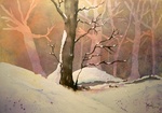 1997Het bos wacht op het begin van de lente. Het licht heeft al een beetje voorjaar in zich. Inclusief ziverkleurige galerie wissellijst.