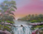 2022Fantasielandschap op aquarelmanier met water vermengbare olieverf. 2 panelen van 30x40cm in een lijst Voorzien van een baklijst.