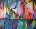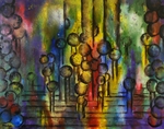 2011Geinspireerd door glas-in-loodramen ontstond het idee voor dit schilderij. Al schilderend ontstond het en bracht me onderweg qua compositie en kleur veel genoegen. Ook is een groep onderweg.